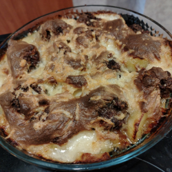 И по поводу времени выпекания, может у меня плита такая, но я сначала обжариваю на сковороде (минуты по 3 с двух сторон), а уже потом в духовку минут на 40, а то и час. Тогда пропнкается. И чтобы картофель не был сырым, сначала его минут на 5 в микроволновку ставлю.