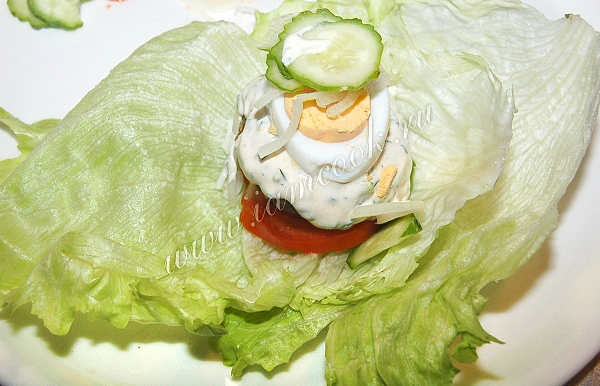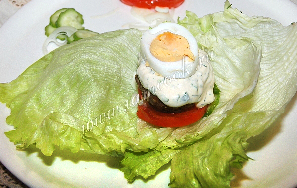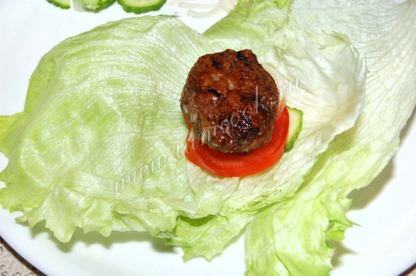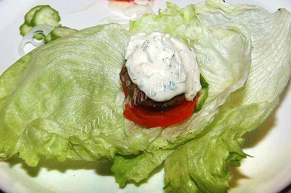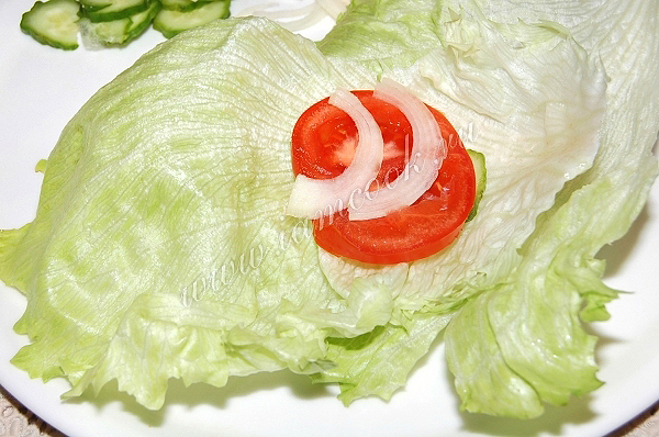Такая закуска особенно популярна весной, когда после длинной зимы хочется свежих овощей. "Айсберг" будет приятно похрустывать, соус смягчит вкус, а свежие овощи добавят нотку небольшой пикантности. И любители мяса останутся довольны, т.к. котлеты получаются с натуральным вкусом, они не содержат никаких добавок, кроме репчатого лука. Такая закуска порадует вас и ваших друзей на пикнике.