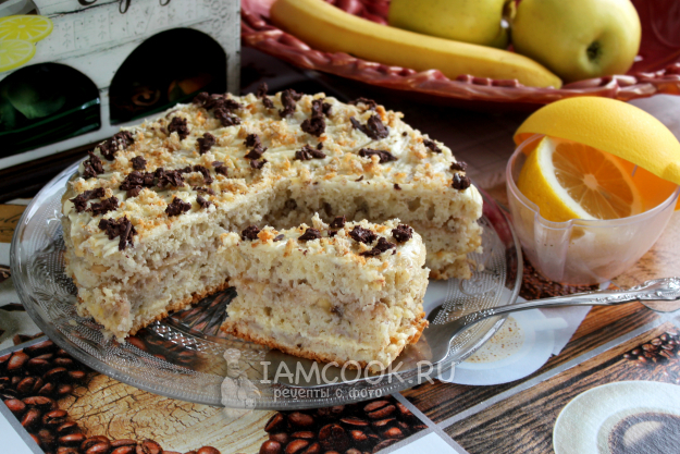 Бананы натрите на крупной терке и вмешайте в тесто для торта.