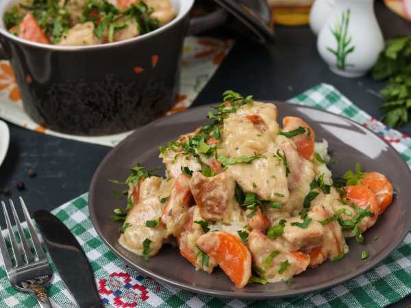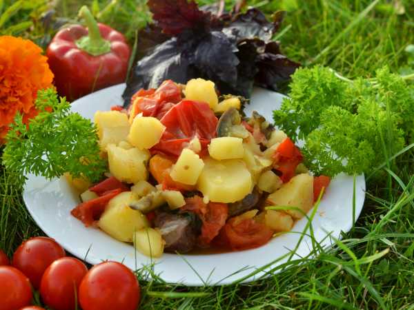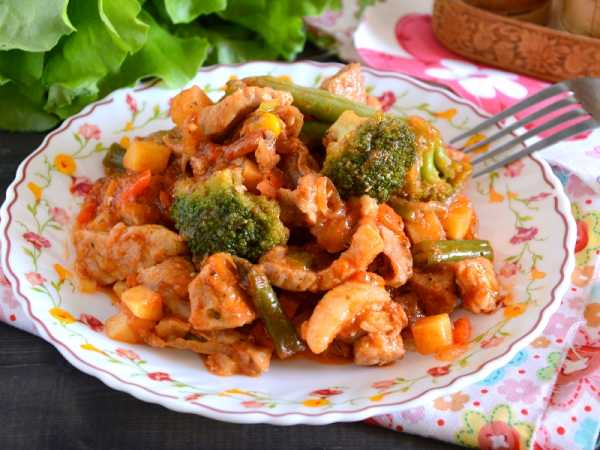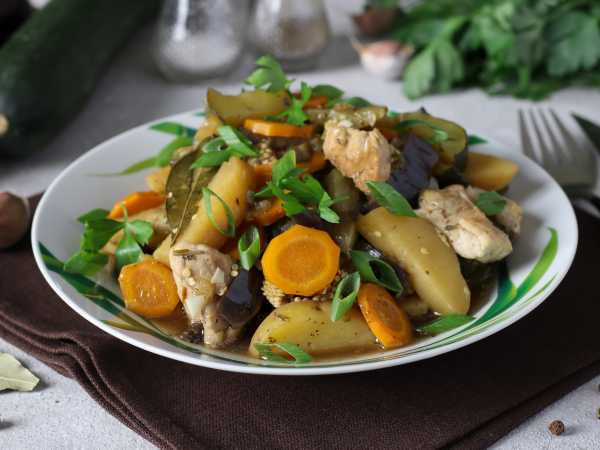 Вкусное рагу из курицы с овощами готово.