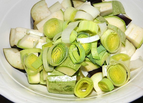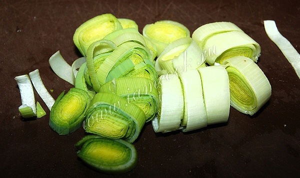 Лук порей нарезать кольцами.