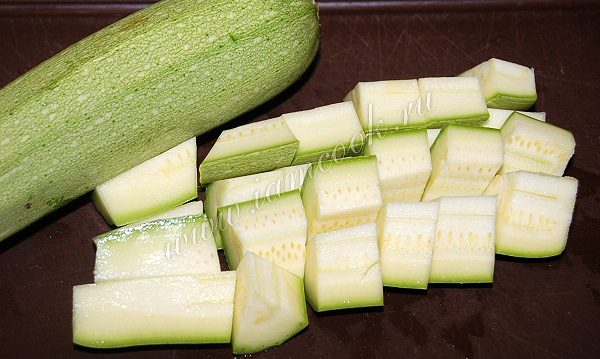 Кабачок нарезать небольшими кусочками.