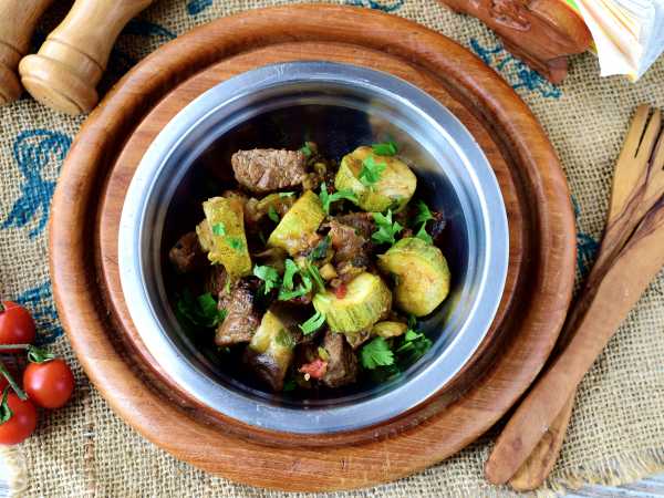 Тушеный кабачок с фаршем в мул