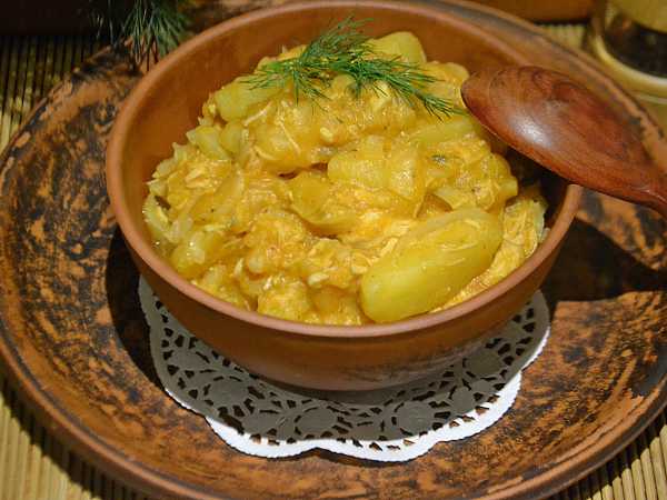 Тушеная курица в сметане с капустой