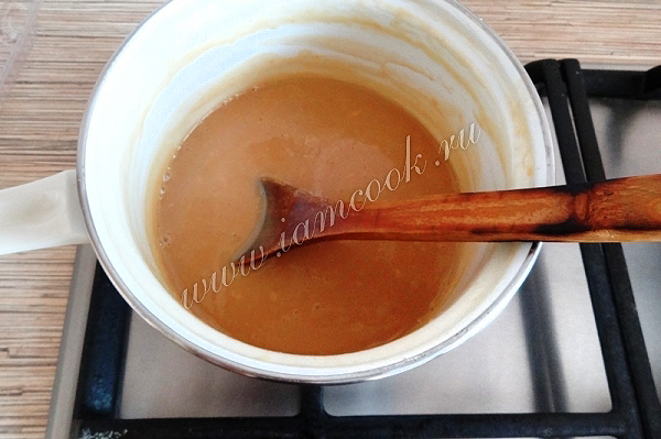 8. Получается вязкая масса, которая стекает тонкой лентой с ложки. Дайте массе остыть и она еще немного загустеет.