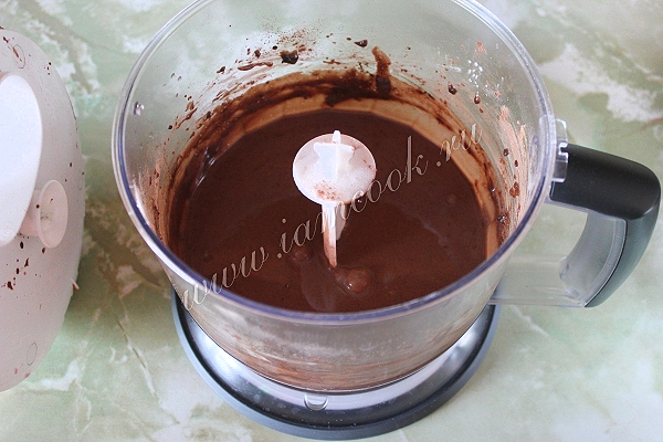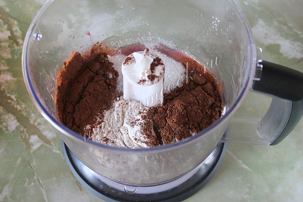 Добавьте сахар, муку с разрыхлителем, крахмал, какао, пряности и перемешайте.