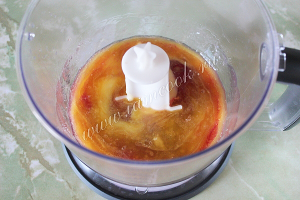 Для теста сначала взбейте яйца с солью, затем добавьте размягченный маргарин, алкоголь, молоко и снова взбейте.