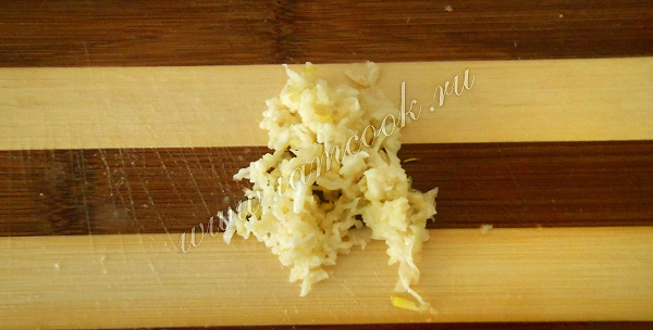 4. Чеснок пропустить через чеснокодавку или натереть на мелкой терке.