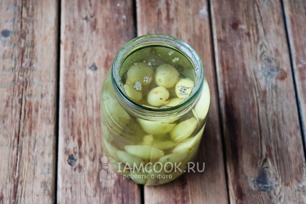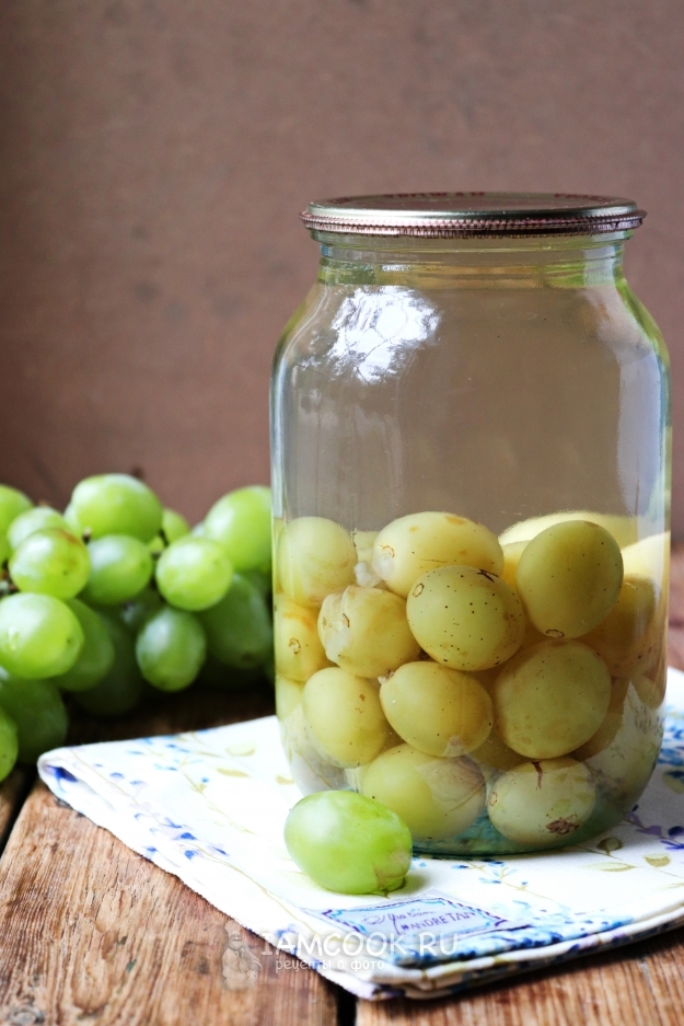 Компот из белого винограда на зиму готов. Переверните баночку вверх дном и проверьте, герметично ли она закупорена. После чего тепло укутайте банку и оставьте до полного остывания.