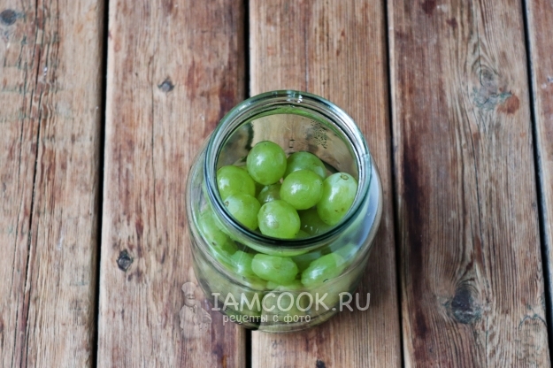 Прикройте банку крышкой и оставьте на 15 минут. За это время виноград прогреется и отдаст свои ароматы. Жидкость немного поменяется в цвете.