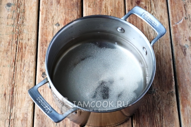 В воду добавьте сахар и проварите сироп 1-2 минуты после закипания.
