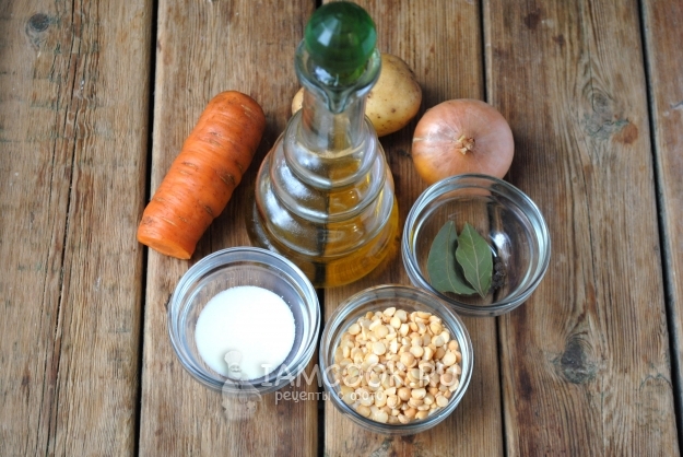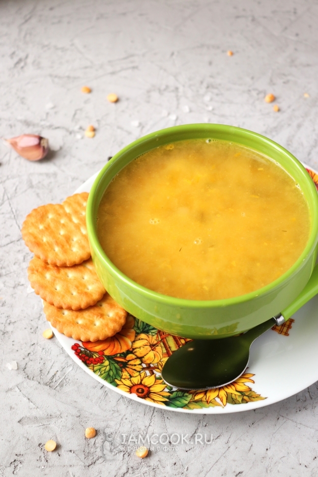 Очень вкусный классический гороховый суп без мяса готов. Разлейте его по порционным тарелкам и в горячем виде подавайте на стол.