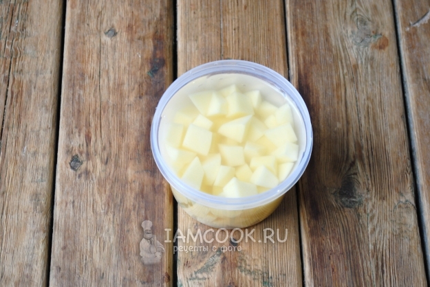 Картофель нарежьте брусочками или кубиками среднего размера.