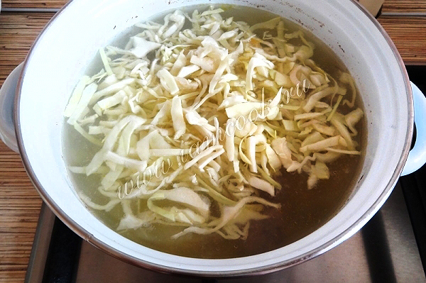 11. Варим на среднем огне до полуготовности картофеля и добавляем капусту.