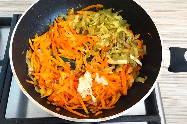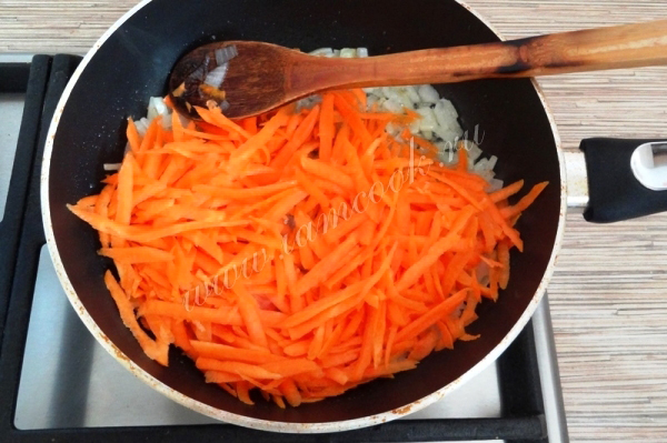 5. Добавляем морковь и обжариваем до мягкости моркови.
