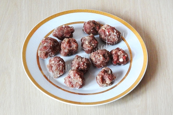 2. Для начала лепим небольшие фрикадельки и отправляем их в морозилку немного подморозиться.