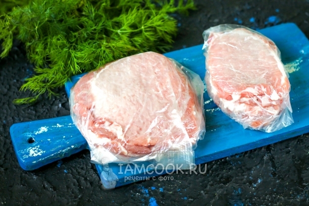 Первым делом счистите пленки с каждого куска мяса, особенно голубого цвета, отделяющие мышцы друг от друга. Они перекручивают мясо в процессе термической обработки и не пережевываются, цепляются за решетку мясорубки, если вы решите измельчить незачищенное мясо. Свиную мякоть промойте после зачистки в воде и нарежьте округлыми частями по 1 см толщиной - это заготовки для шницелей и отбивных.