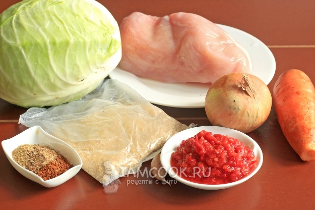 Итак, для приготовления диетических голубцов из курицы возьмем следующий набор продуктов.