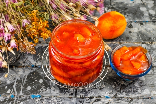 Заготовленный на зиму конфитюр из персиков идеально хранится в помещении с невысокой температурой, но и в квартирной кладовой тоже не портится в течение 1 года. Если будете использовать фрукты не сочных сортов, то дополнительно вливайте в емкость небольшое количество горячей воды, чтобы десерт не получился слишком плотным.