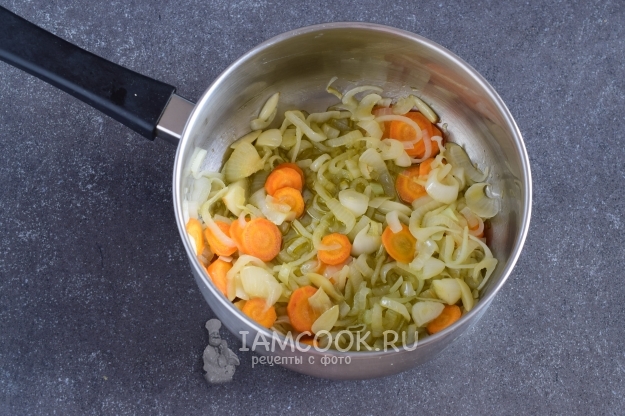 В сотейнике или в кастрюле с толстым дном разогреть оливковое масло и обжарить на нем нарезанные овощи до мягкости, 4-7 минут, помешивая.