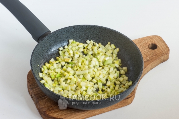 Кабачки без кожицы и жестких семян мелко нарежьте кубиками, обжарьте до мягкости на растительном масле.