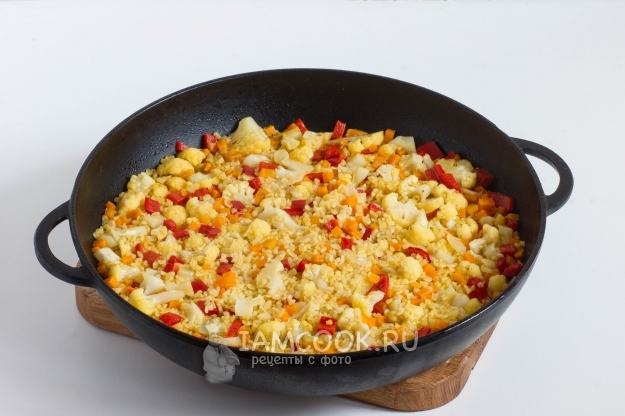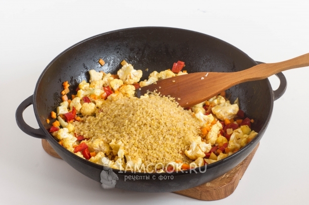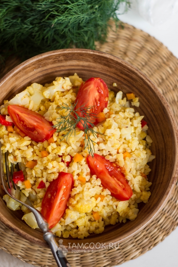 Плов из булгура с цветной капустой и перцем готов! Подавать его желательно в горячем виде.