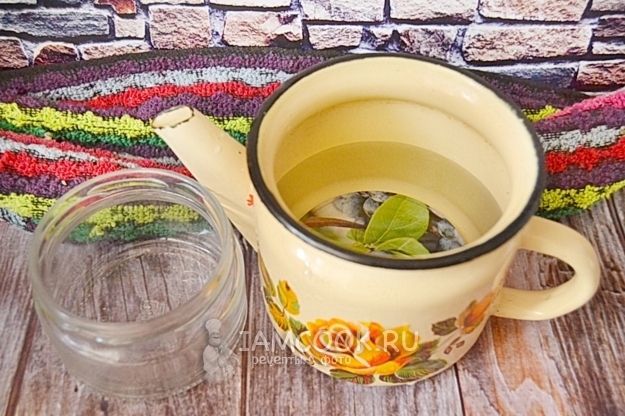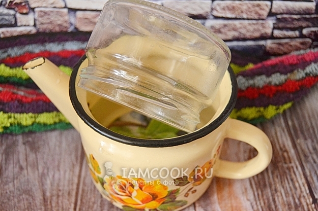 Внутри чайничка прокипятим крышки, а над отверстием установим банки для стерилизации паром.