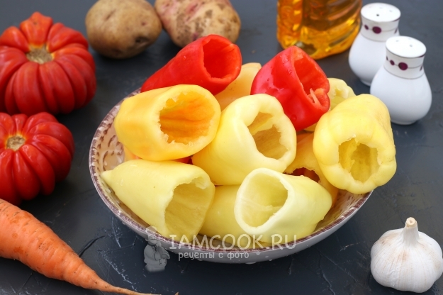 Для приготовления фаршированного перца подготовить из списка необходимые продукты.
