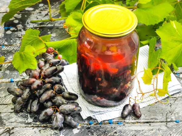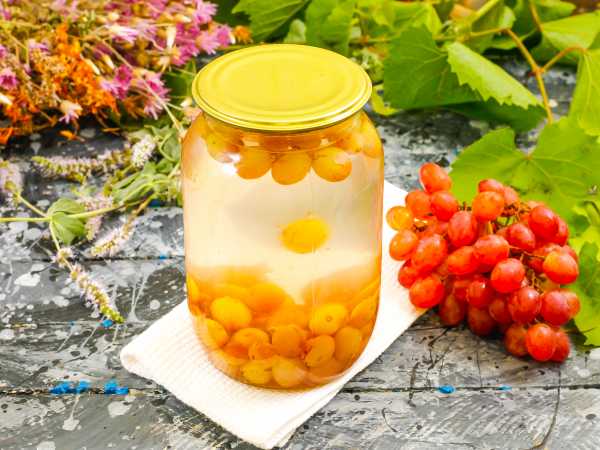 Для приготовления маринованного винограда на зиму без стерилизации подготовьте необходимый набор ингредиентов. Виноград можно выбрать любого сорта и цвета, главное, чтобы ягодки были плотными.