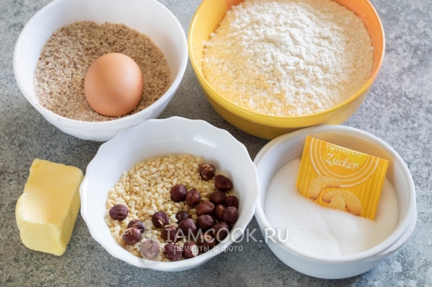 Делать его можно и нужно из разных орехов. Причем разных и по виду, и по степени измельчения. Обязательна ореховая мука, совсем без нее начинка получается слишком нестабильной, после разрезания она может течь. Можно, конечно, взять и все 100 процентов муки, но более интересно получается, если брать и муку, и орехи, рубленные как-то более крупно. Я использую фундук и миндаль, но можно брать и разные другие сочетания, кому что доступно.