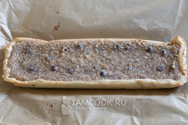Распределяем ореховую смесь по песочному тесту равномерно.
