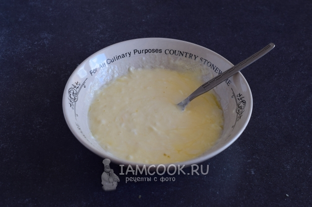Тем временем приготовить заливку. В миске смешать йогурт, яйца и сыр Фета.