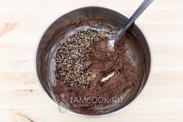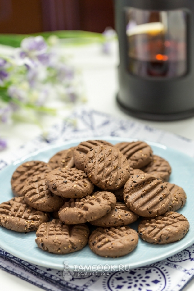Шоколадное печенье с кунжутом и кукурузной мукой готово.