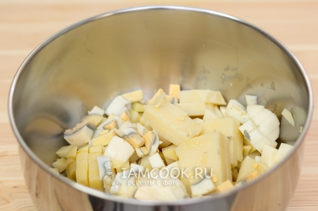 Яйца и картофель нарежем достаточно крупными кубиками.