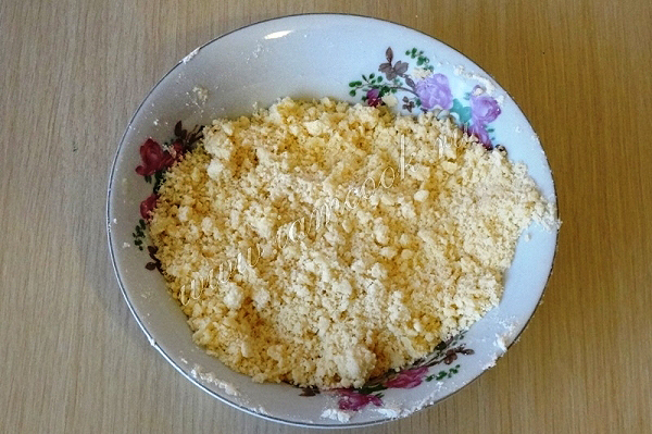 Рассыпчатые рогалики из песочного теста, сдобренного сметаной и дрожжами (это, кстати, одна из разновидностей песочного теста, когда добавляется сметана или кефир, желтки, дрожжи), получаются чуть слоеными и нежными. Тесто для них не должно быть слишком крутым, пусть лучше немного липнет к рукам и перед раскаткой желательно подержать его в холодильнике минут 10. Несмотря на наличие дрожжей, тесто при выпечке не пузыриться и особо сильно не поднимается. А если хотите, чтобы рогалики получились приятного желтого цвета, то можно добавить один яичный желток, предварительно растертый с солью.