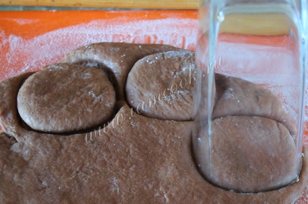 Раскатайте тесто толщиной 1,5-2 см и формочкой или стананом сделайте будущие пряники.