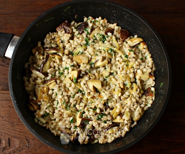 Ароматная и очень вкусная перловая каша со сливками и грибами готова, подаем ее сразу же на стол.