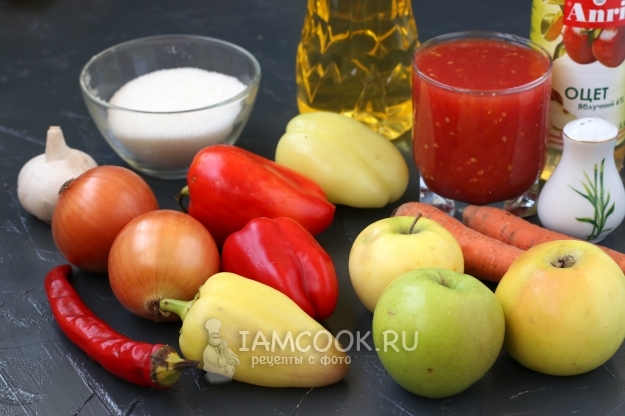 Ингредиенты для приготовления аджики с яблоками и морковью на зиму подготовить из списка.