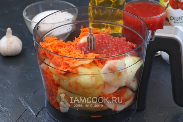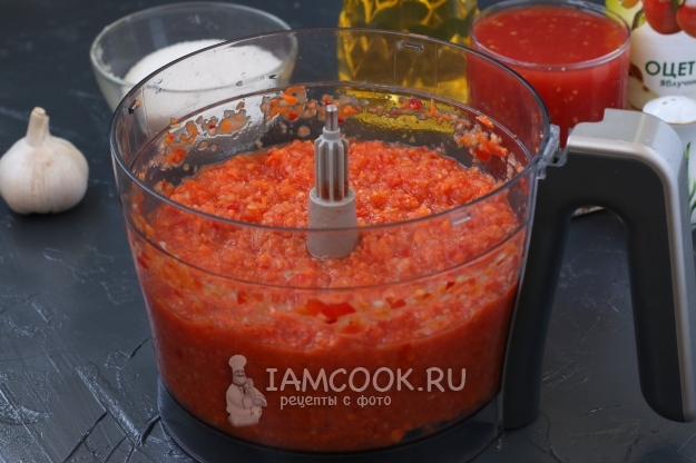 Почистить все овощи: вес продуктов я указала в очищенном виде. Овощи можно измельчать с помощью блендера или прокрутить всё в мясорубке. У меня мясорубки нет, поэтому морковь я заранее натёрла на тёрке, иначе она плохо измельчается блендером. Горький перец можно оставить с семечками, или удалить их - по вашему желанию.