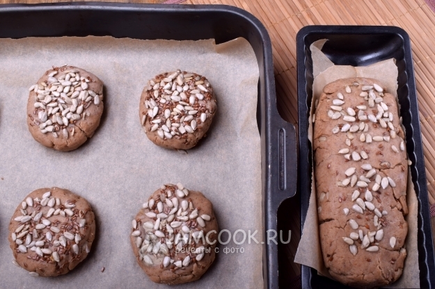 Выпекаем безглютеновый хлеб в разогретой духовке 30-40 минут. Готовность можно проверить, постучав по донышку хлеба: пропеченный хлеб издаст глухой (пустой) звук.