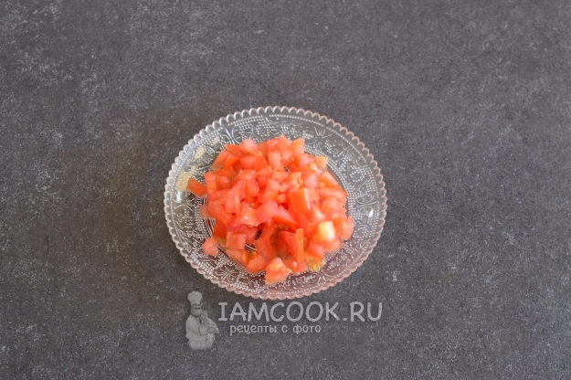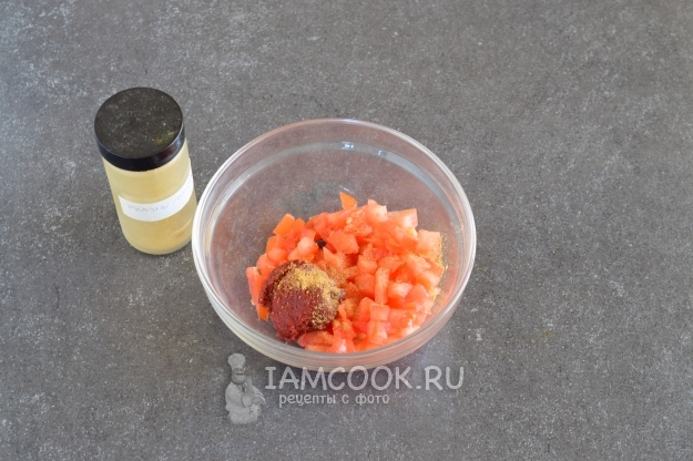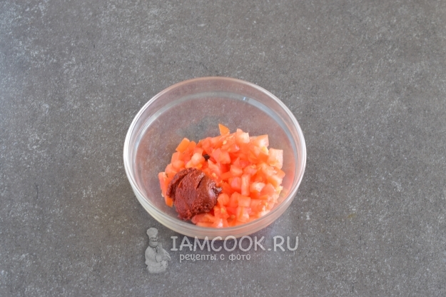 Выложить нарезанный помидор в миску, добавить томатную пасту.