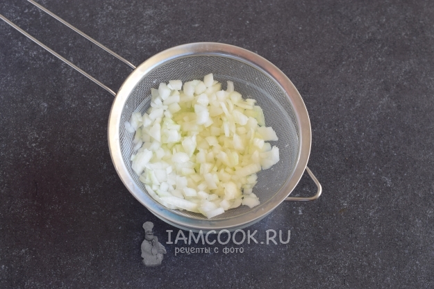 Через 20 минут с лука слить воду, переложив его в дуршлаг или сито.