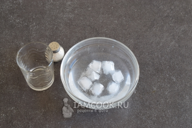 В миску влить воду, добавить 1 ч.л. соли и кубики льда.