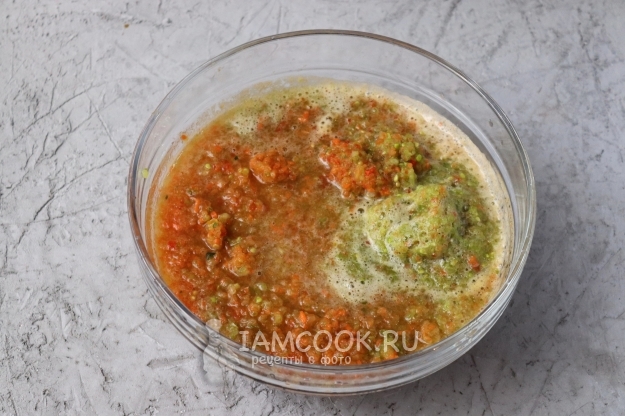 Подготовленные овощи пропустите через мясорубку или измельчите в чаше блендера.