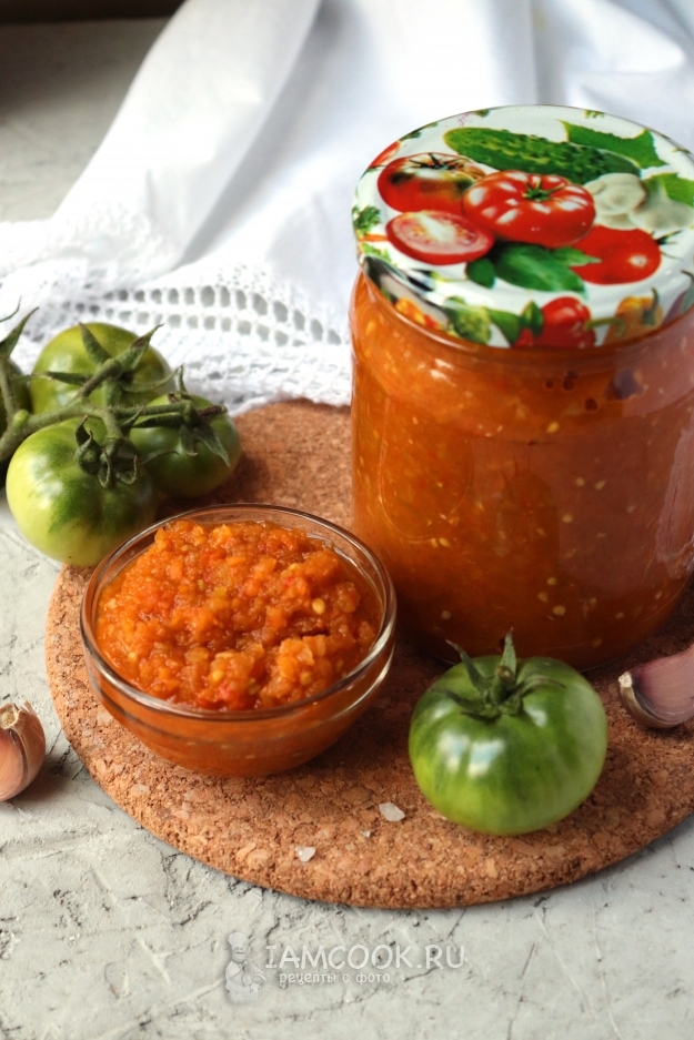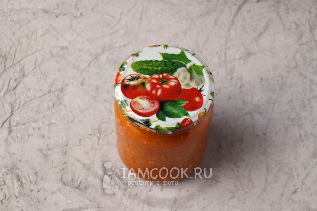 Икра из зелёных помидоров "Пальчики оближешь" на зиму готова. Храните заготовку в тёмном прохладном месте.