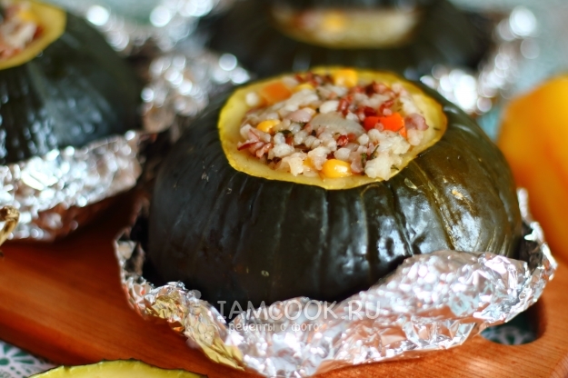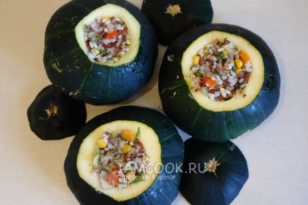 Запеченные в духовке патиссоны, фаршированные рисом и овощами, готовы! Приятного аппетита!