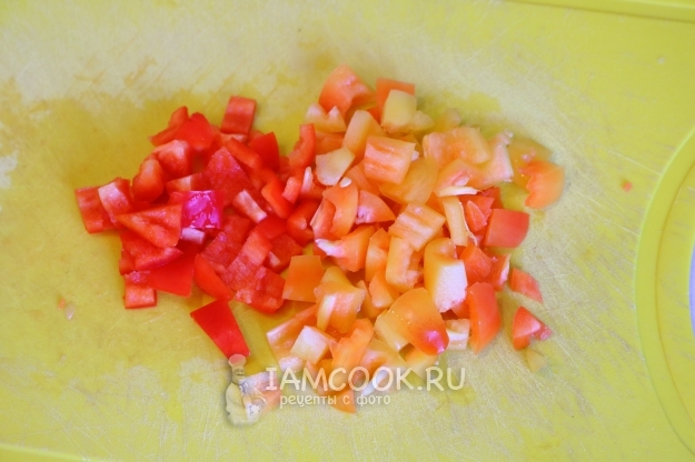 У обоих видов перца удаляем семечки и режем, как и остальные овощи, некрупным кубиком.