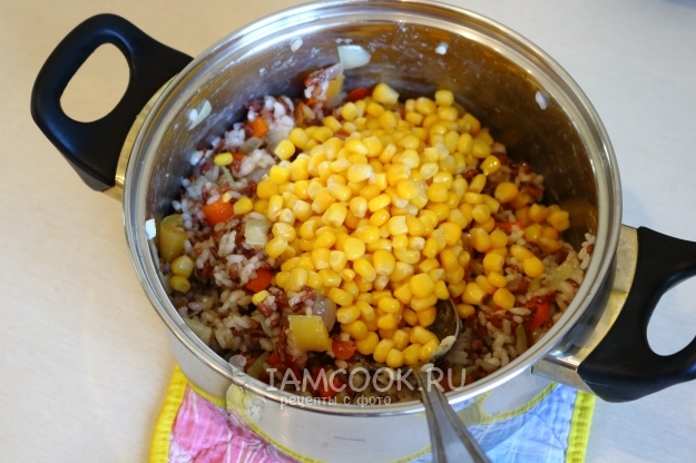 Туда же отправляем консервированную кукурузу.