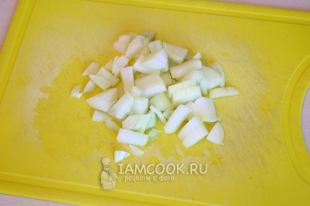Лук очищаем и нарезаем небольшим кубиком.
