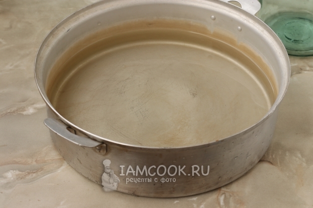 В нижнюю кастрюлю соковарки налить 3.5-4 л воды. Можно наливать холодную воду, а можно сразу горячую.